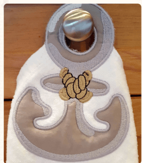 These towel toppers make it easy to hang from your kitchen drawer pulls. each towel is 11 x 17. These items are customizable. More designs coming soon.