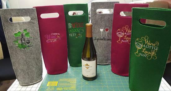 Bags are 6" x 15" they fit a 750 ml bottle perfectly. They are made of a heavy felt that will absorb sweat very well on hot summer nights. Small design included. Comes in Lime, green, aqua,lite grey, dark grey, maroon.*