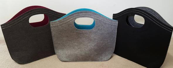 Made of heavy felt. measures 15" W x 19"H x 5 1/2" D